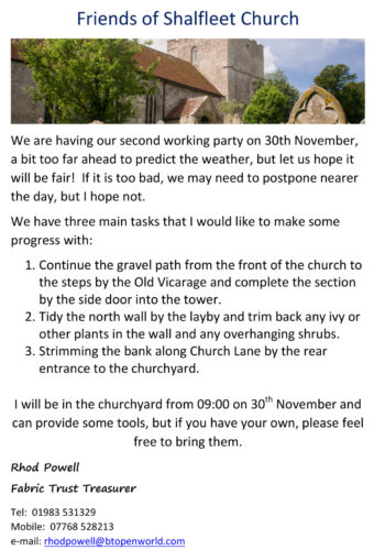 It was lovely to see so many of you in church for Remembrance Sunday, where once more we heard a poignant tale of one of our Shalfleet war dead. We will remember them.