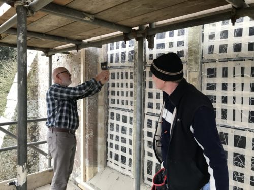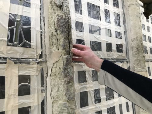 Finally, another piece of good (and less good) news. The winter storms have finally passed and allowed Southern Lights and Wight Stonemasonry to start the planned work on the church’s East window. The stained glass was removed successfully between 20th and 25th January, not without some difficulty as closer inspection of the stone and glass showed that there had been some less than ideal work done in the past and bits of the glass had been held in place with modern cement mortar, which has resulted in significant damage to the stonework. Closer inspection of the stone arches showed significant stress cracking which requires urgent work. We had initially only costed for replacement of the mullions and quatrefoils, but it is clear that we will need to replace considerably more stone. We have requested a quote for this and will review how we will go about raising the funds.