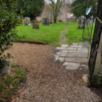The weather has not been kind to us over the last couple of months, with what felt like several times the annual rainfall falling on the village. This has made the grass very wet and restricted access to many parts of the churchyard. However, that does not mean that the Friends have not been active. We had our second working party on 30th November and successfully completed the gravel path between the car park by the village hall to the steps into Church Lane. I think we can safely say that this has been a success as, despite the large amount of rain we have had very little ‘washout’ of the gravel onto the steps at the eastern end of the path. Prior to the upgrade the path acted as a drain for much of the eastern side of the churchyard and it was consequently very slippery, with the path at times looking more like a stream. Replacing the V shaped path with a flat base and gravel has reduced the water runoff significantly.