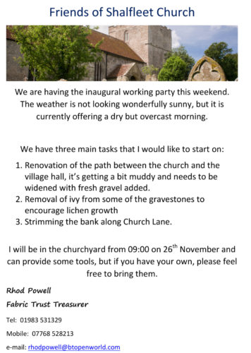 A huge thank you to those who have already signed up to the new Friends of Shalfleet Church group. And to Rhod Powell for all his hard work and enthusiasm for setting it up. This is a great way for everyone to help look after our wonderful church and its churchyard and meadow, and for only £15 p.a. (or £20 for a family) you will be making a huge difference to our slender finances, and helping us to keep the ship steady over the coming years. Details are in the document Friends of Shalfleeet Church July 2019