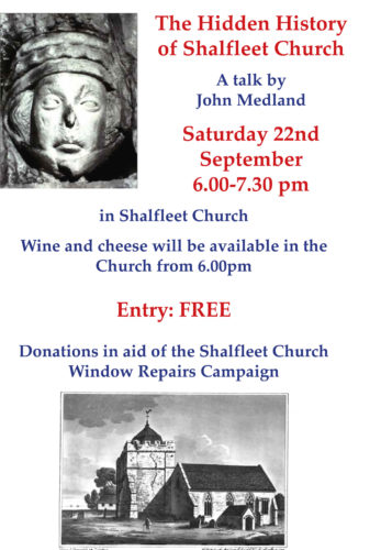 We are very much looking forward to John Medland’s talk on the history of Shalfleet at 6pm this Saturday in the church. All are most welcome, and there will be scrummy refreshments before the talk.